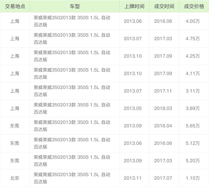 以上为这款车在各个地区二手车的成交价格,由此可见,影响二手车价格的因素很多,不能单从一两个因素去看。