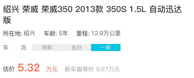 该款车2013年上牌启用,行驶12.9万公里,新车指导价9.87万元,车况一般的情况下,成交价3.98万。