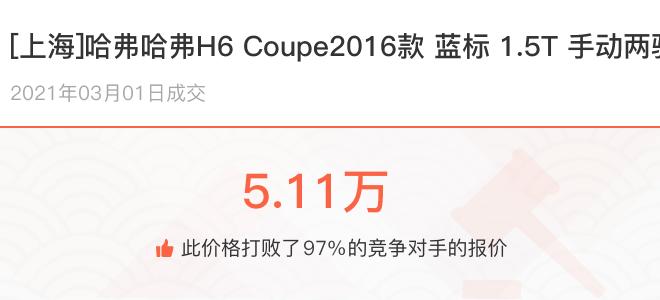 下面一起来看下开了不同公里数的哈弗哈弗H6 Coupe在二手车拍卖平台上卖了多少钱: