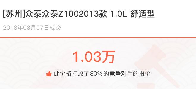 下面一起来看下开了不同公里数的众泰众泰Z100在二手车拍卖平台上卖了多少钱: