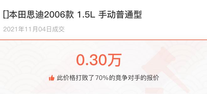 下面一起来看下开了不同公里数的本田思迪在二手车拍卖平台上卖了多少钱: