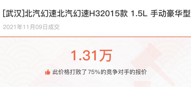 下面一起来看下开了不同公里数的北汽幻速北汽幻速H3在二手车拍卖平台上卖了多少钱: