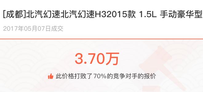 这辆开了4年的北汽幻速北汽幻速H3卖了这么多钱: