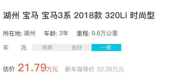 该款车2018年上牌启用,行驶9.8万公里,新车指导价32.38万元,车况一般的情况下,成交价19.20万。