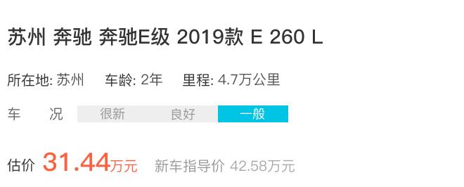 该款车2019年上牌启用,行驶4.7万公里,新车指导价42.58万元,车况一般的情况下,成交价35.00万。