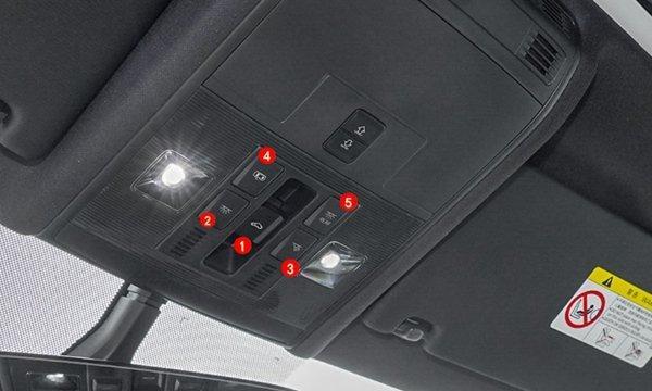 探岳X的天窗开关在前排车内灯光控制面板上。除了天窗开关外还有主驾驶位阅读灯、副驾驶位阅读灯、车内灯光等多个功能按键。