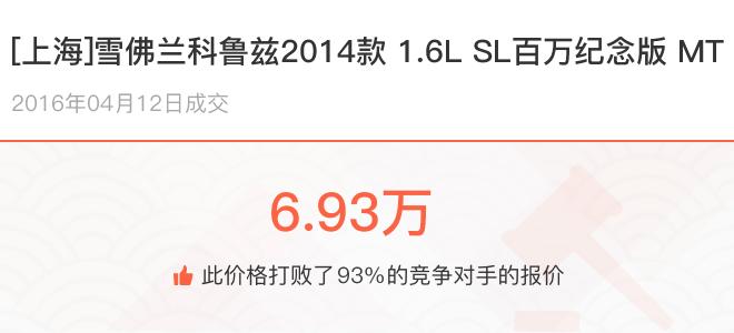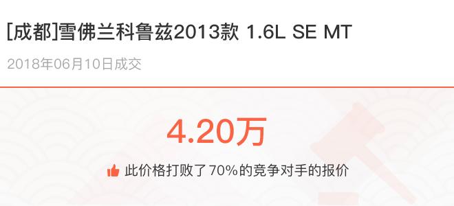 下面一起来看下开了不同公里数的雪佛兰科鲁兹在二手车拍卖平台上卖了多少钱: