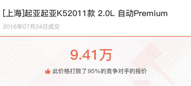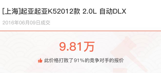 下面一起来看下开了不同公里数的起亚起亚K5在二手车拍卖平台上卖了多少钱: