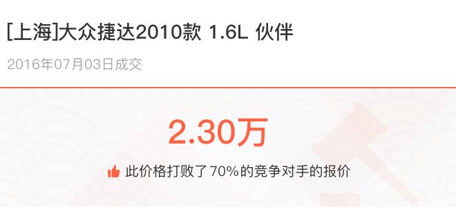 下面一起来看下开了不同公里数的大众捷达在二手车拍卖平台上卖了多少钱: