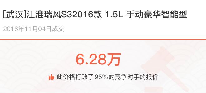 下面一起来看下开了不同公里数的江淮瑞风S3在二手车拍卖平台上卖了多少钱: