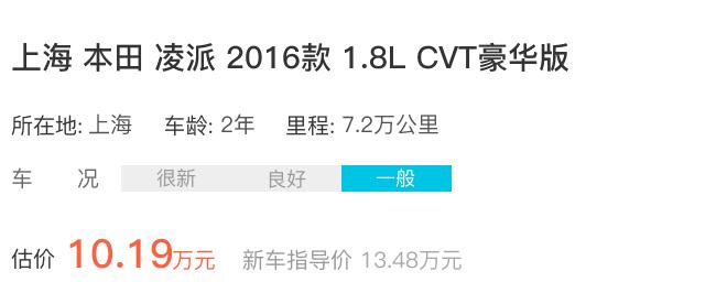 该款车2016年上牌启用,行驶7.2万公里,新车指导价13.48万元,车况一般的情况下,成交价9.80万。