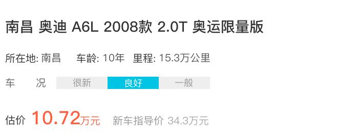 该款车2008年上牌启用,行驶15.3万公里,新车指导价34.3万元,车况良好的情况下,成交价5.76万。