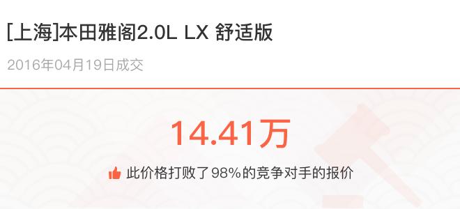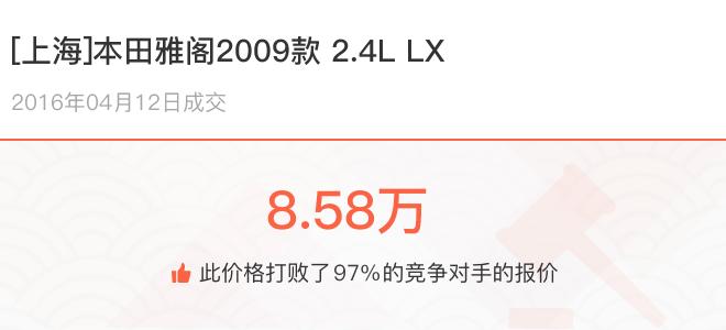 下面一起来看下开了不同公里数的本田雅阁在二手车拍卖平台上卖了多少钱: