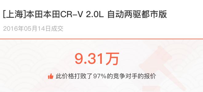 下面一起来看下开了不同公里数的本田本田CR-V在二手车拍卖平台上卖了多少钱: