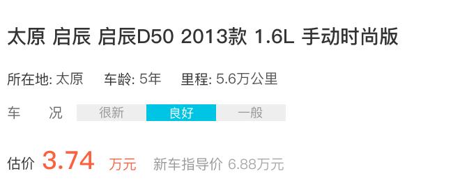 该款车2013年上牌启用,行驶5.6万公里,新车指导价6.88万元,车况良好的情况下,成交价3.12万。