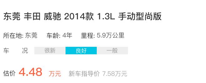 一般来说,新车落地一年至少就贬值20%了,这位车主的这款丰田-威驰到底能卖多少钱?是车主要价要高了,还是开了几年的车就是不值钱?