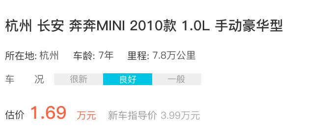 从上图可以看到,有的成交价格比评估价格高有的低,个别车甚至比评估价格还低了不少。不得不说,长安-奔奔MINI的保值率真心不高啊。