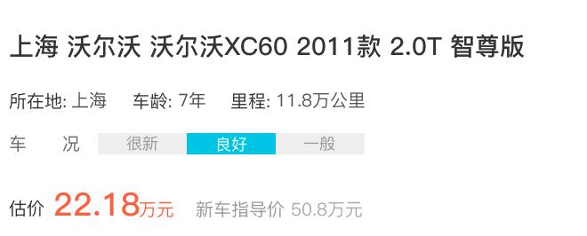 一辆落地价55.88万的沃尔沃-沃尔沃XC60,开了7年能卖多少钱?最近,上海的一位车主打算把开了7年的沃尔沃-沃尔沃XC60给卖了,本以为很快就能高价卖掉,谁成想卖了1个多月都没卖掉!