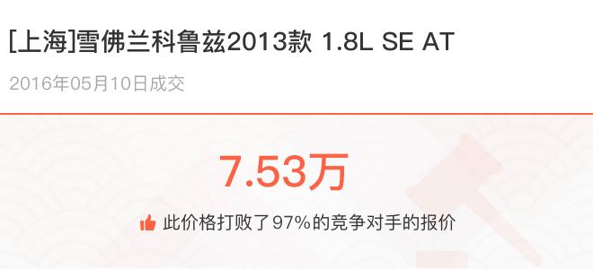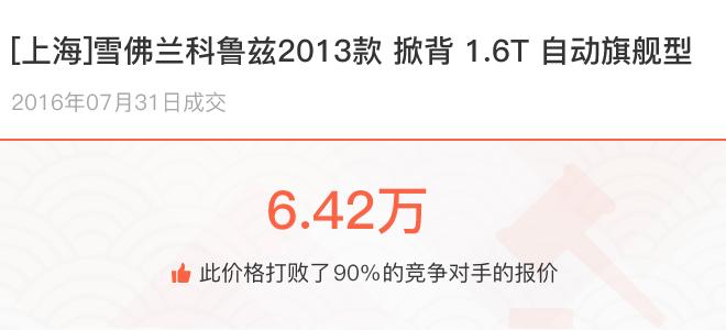下面一起来看下开了不同公里数的雪佛兰科鲁兹在二手车拍卖平台上卖了多少钱: