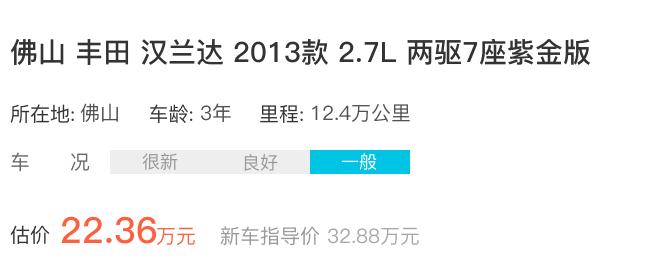 一辆落地价36.17万的丰田-汉兰达,开了3年能卖多少钱?最近,佛山的一位车主打算把开了3年的丰田-汉兰达给卖了,把卖车的钱当首付加上贷款买辆更好的新车,结果却郁闷了!