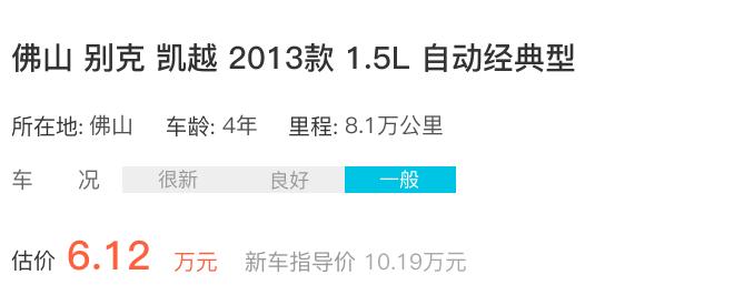 从上图中可以看到,这辆车的二手车估价是6.12万左右。从新车10.19万到二手车卖价6.12万,整整贬值了4.07万,平均一年贬值9.99%,这个贬值率实在是不低了,这种贬值率对谁来说都后悔当初买了这款车!