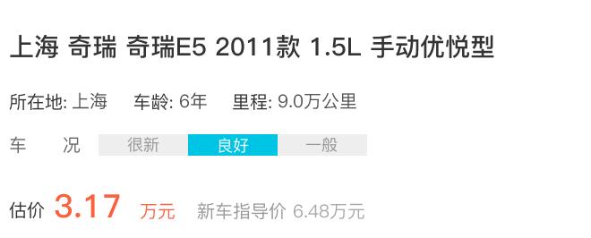 一般来说,新车的贬值率很高,开一年就能贬值20%左右,这位车主的这款奇瑞-奇瑞E5到底能卖多少钱?是车主要价要高了,还是开了几年的车就是不值钱?