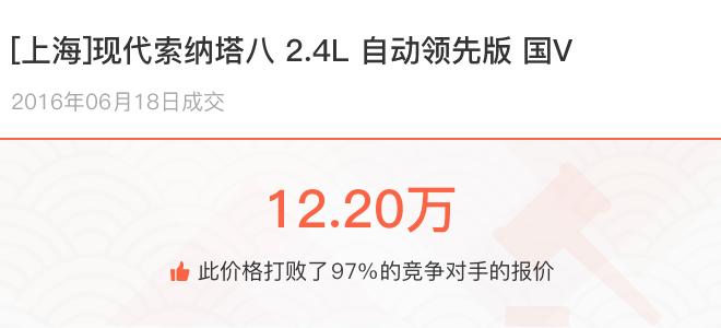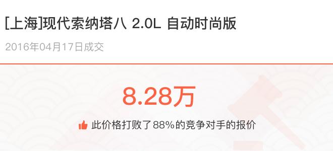 下面一起来看下开了不同公里数的现代索纳塔八在二手车拍卖平台上卖了多少钱: