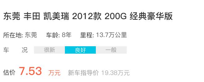 一般来说,新车的贬值率很高,开一年就能贬值20%左右,这位车主的这款丰田-凯美瑞到底能卖多少钱?难道这车真卖不到车主的期望价?