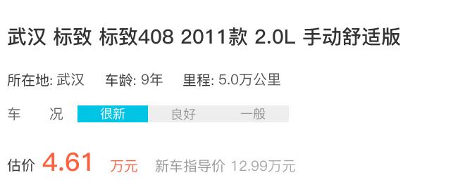 一般来说,新车落地一年至少就贬值20%了,这位车主的这款标致-标致408到底能卖多少钱?是车主要价要高了,还是开了几年的车就是不值钱?