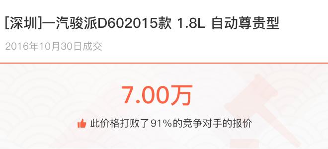 下面一起来看下开了不同公里数的一汽骏派D60在二手车拍卖平台上卖了多少钱: