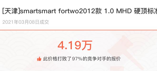 下面一起来看下开了不同公里数的smartsmart fortwo在二手车拍卖平台上卖了多少钱: