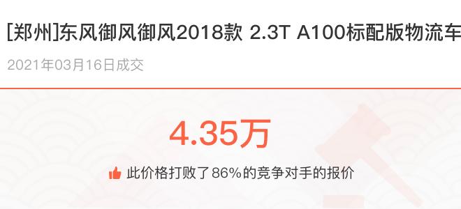 下面一起来看下开了不同公里数的东风御风御风在二手车拍卖平台上卖了多少钱:
