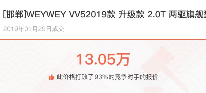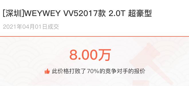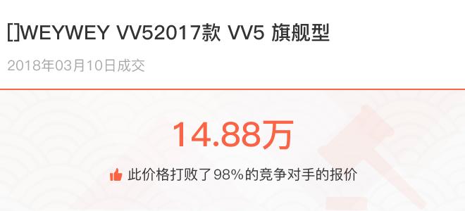 下面一起来看下开了不同公里数的WEYWEY VV5在二手车拍卖平台上卖了多少钱: