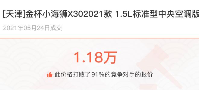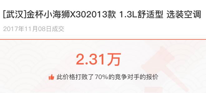 下面一起来看下开了不同公里数的金杯小海狮X30在二手车拍卖平台上卖了多少钱: