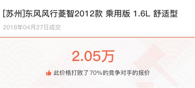一辆开了6年12.9万公里的二手车还值多少钱?苏州车主看到朋友换了辆新车,也想把自己的东风风行菱智卖掉换辆新的,却不知道这辆行驶了12.9万公里的旧车到底还能卖多少钱?下面一起来看下开了不同公里数的东风风行菱智在二手车拍卖平台上卖了多少钱: