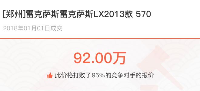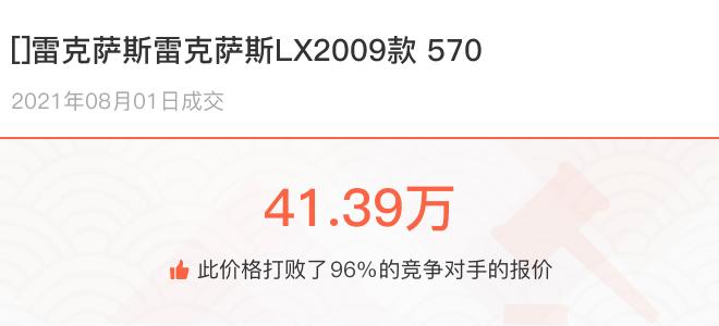 下面一起来看下开了不同公里数的雷克萨斯雷克萨斯LX在二手车拍卖平台上卖了多少钱: