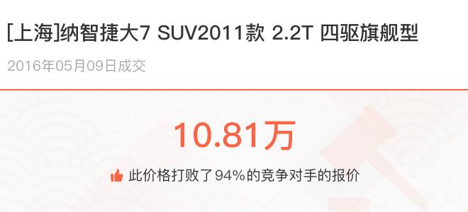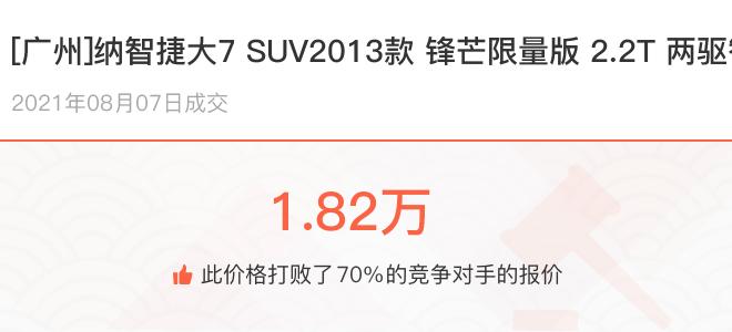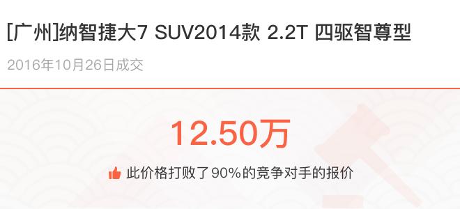 下面一起来看下开了不同公里数的纳智捷大7 SUV在二手车拍卖平台上卖了多少钱: