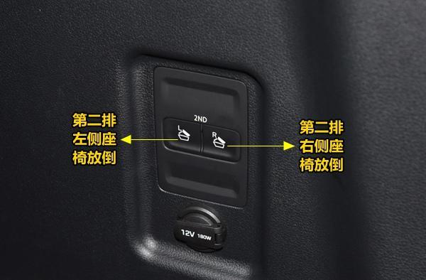 2、在后备箱一侧能找到后排座椅电动放倒按钮。按下后座椅自动放倒。