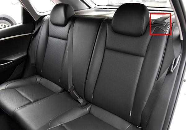 2、后座座椅放倒拉手在后排坐垫最边的地方,材质通常为尼龙。