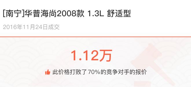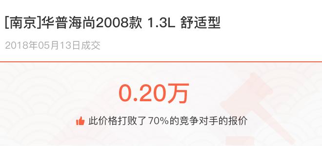下面一起来看下开了不同公里数的华普海尚在二手车拍卖平台上卖了多少钱: