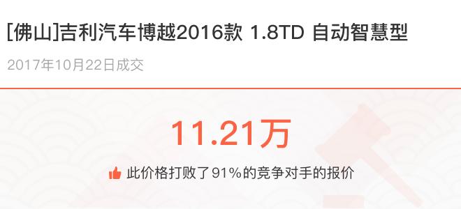 下面一起来看下开了不同公里数的吉利汽车博越在二手车拍卖平台上卖了多少钱: