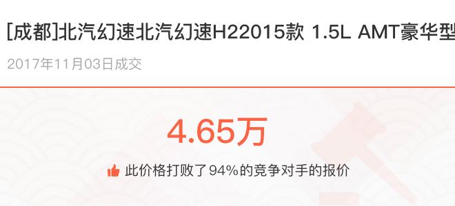 这辆开了4年的北汽幻速北汽幻速H2卖了这么多钱: