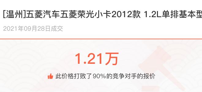 下面一起来看下开了不同公里数的五菱汽车五菱荣光小卡在二手车拍卖平台上卖了多少钱: