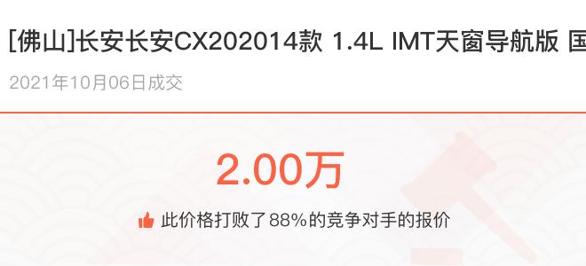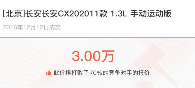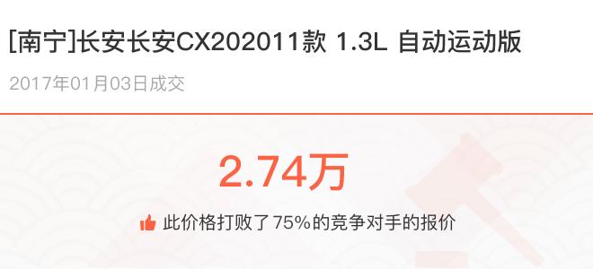 下面一起来看下开了不同公里数的长安长安CX20在二手车拍卖平台上卖了多少钱: