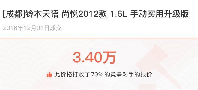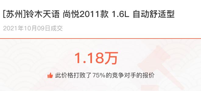下面一起来看下开了不同公里数的铃木天语 尚悦在二手车拍卖平台上卖了多少钱: