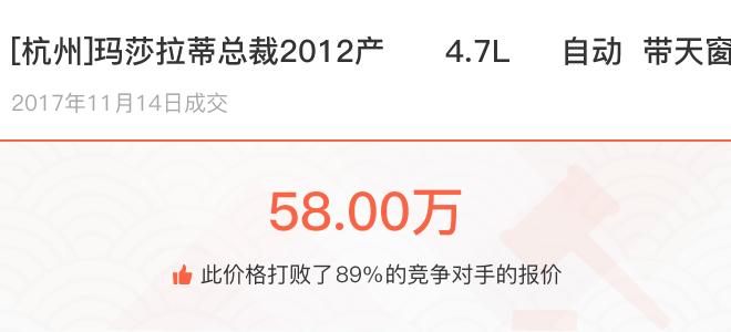 下面一起来看下开了不同公里数的玛莎拉蒂总裁在二手车拍卖平台上卖了多少钱: