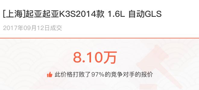 下面一起来看下开了不同公里数的起亚起亚K3S在二手车拍卖平台上卖了多少钱: