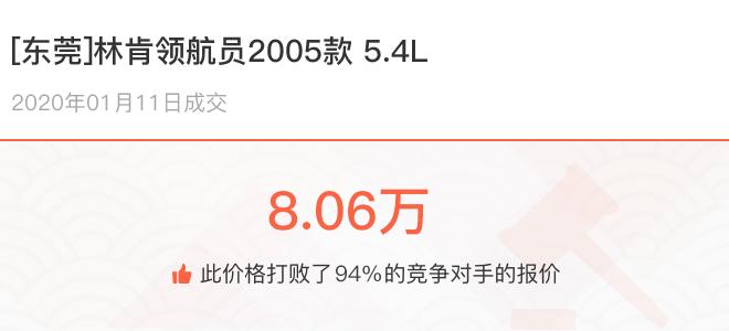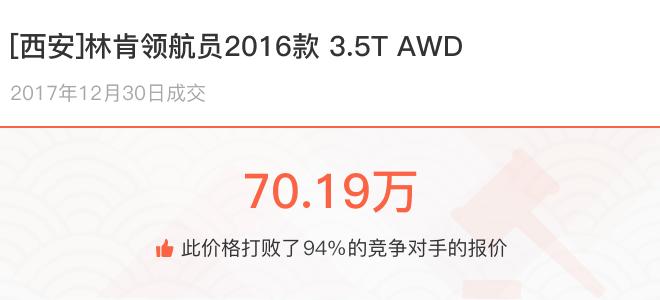 下面一起来看下开了不同公里数的林肯领航员在二手车拍卖平台上卖了多少钱: