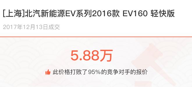 下面一起来看下开了不同公里数的北汽新能源EV系列在二手车拍卖平台上卖了多少钱: