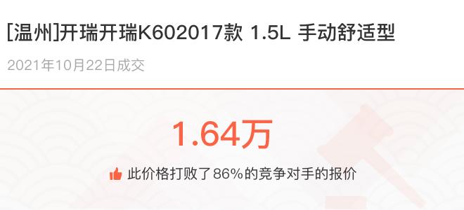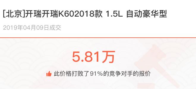 下面一起来看下开了不同公里数的开瑞开瑞K60在二手车拍卖平台上卖了多少钱: